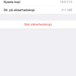 - En sikkerhedskopi er her valgt. Ved at trykke “Slet sikkerhedskopi” fjernes den fra iiCloud.
