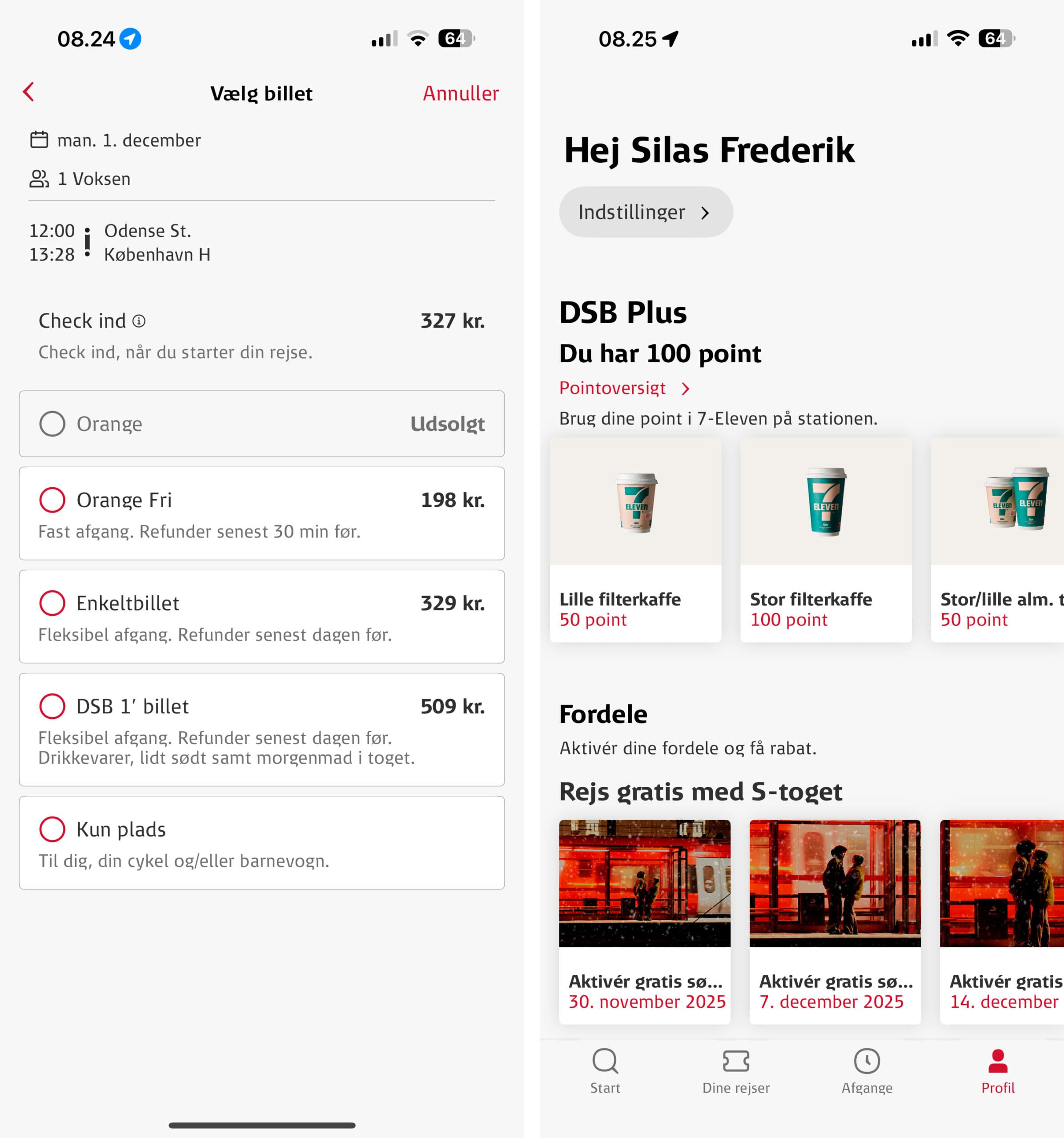 Den største forskel i de to apps er nemheden – og ikke mindst opsparingen af point, som jeg vægter højt. I DSB-appen kan du opspare point, når der indgår tog i din rejse.