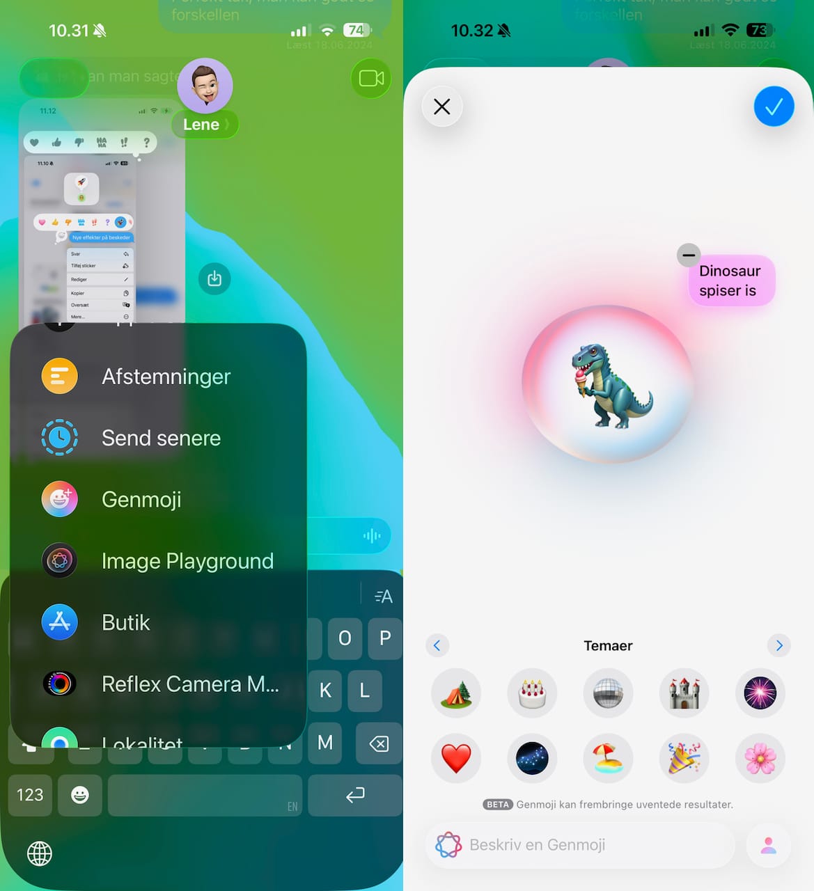 Den første funktion, som nok mere hører til “for sjov”-kategorien, er Genmoji og Image Playground. Du finder disse i Besked-appen, når du vælger en kontakt.