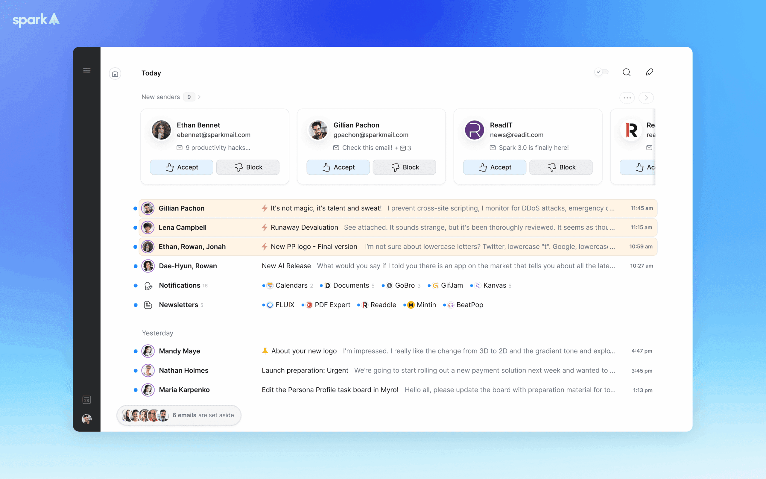 Spark bygger på filosofien om, at mails ikke skal forstyrre unødigt. Derfor har jeg nu fuld kontrol over, hvilke afsendere der må give mig notifikationer.